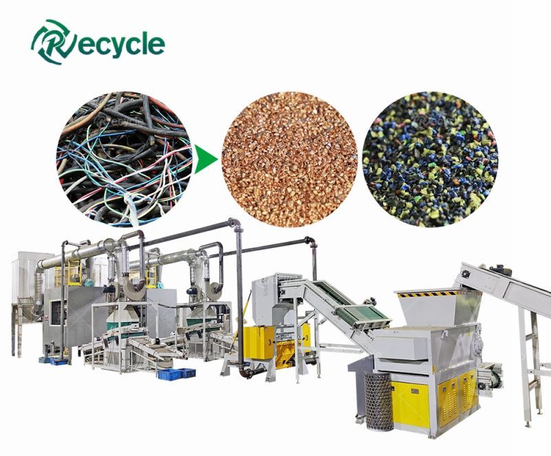Following shredding, the mixture passes through air separation and vibration systems. Copper and aluminum granules, being heavier, separate from lighter plastic insulation through density difference. Electrostatic separators further improve purity by isolating fine metal particles. Modern cable recycling machines achieve metal purity rates above 99%, making recovered copper suitable for direct resale or remelting.