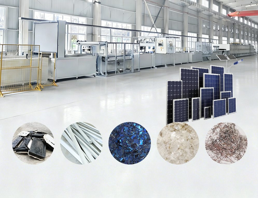 Solar panels contain high concentrations of materials such as glass, aluminum, encapsulants, silicon, and silver; they also contain rare metals such as cadmium and gallium, all of which have significant value for resource recovery. Our company’s solar panel recycling equipment processes discarded PV panels using physical methods—including automated dismantling, crushing, and sorting—to achieve a recovery rate of over 95%.